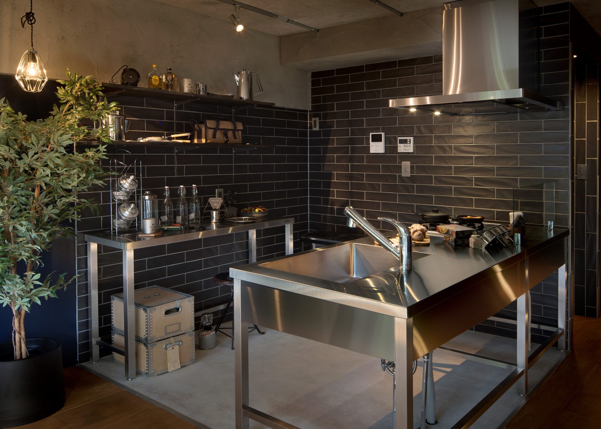 インダストリアルな空間はインテリアや照明器具などにこだわり、素材や色、はたまた歴史やクラフトなども厳選し、無骨さの中にシックで洗練された雰囲気が漂う「大人の住まい」です。