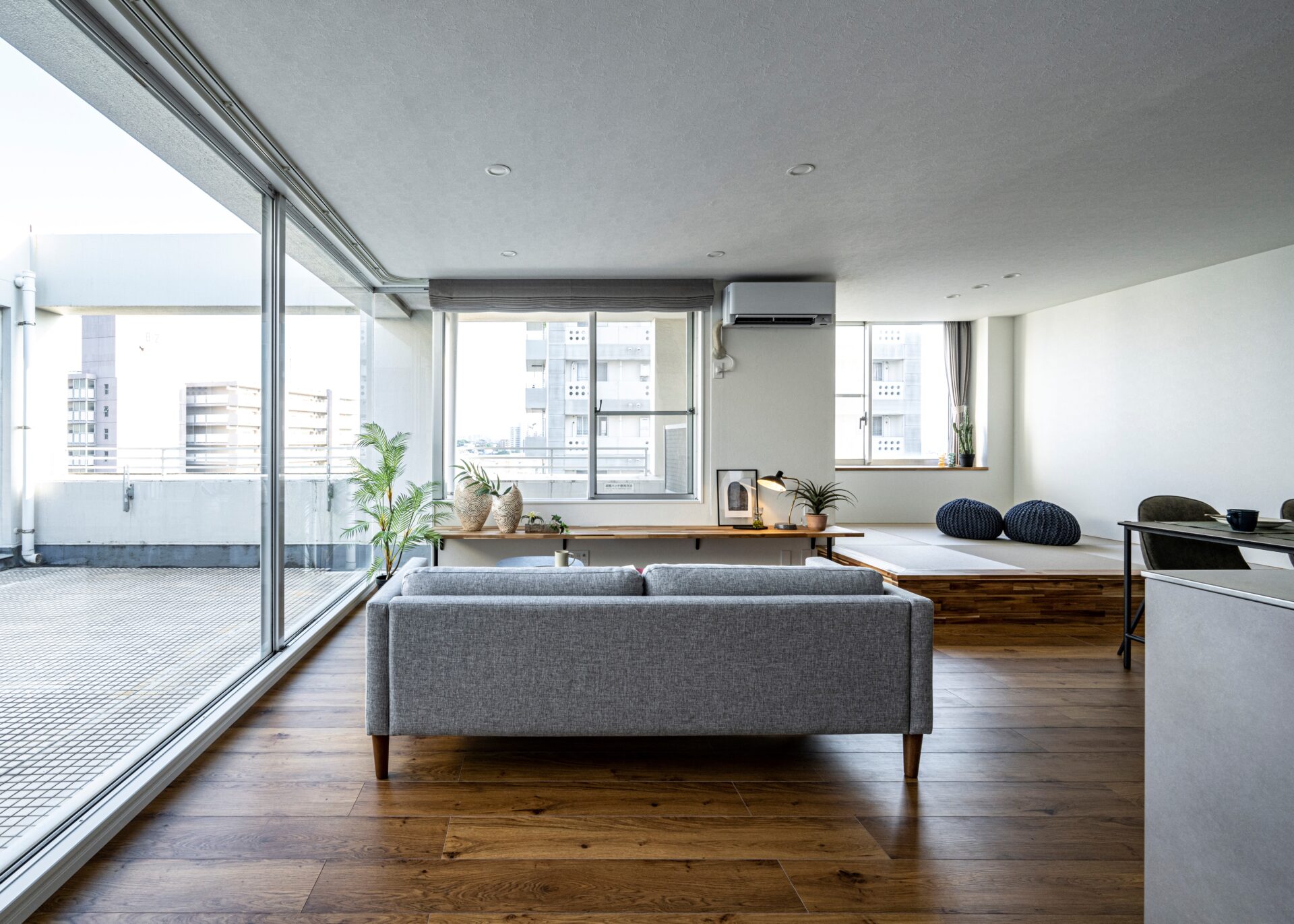 一言で和モダンと言っても、”和”と”モダン”のバランスによってイメージが大きく異なります。格子や障子といった和の「デザイン」や、紙、石といった和の「素材感」をどの程度取り入れるか。和の要素を取り入れば取り入れるほど、落ち着いた趣にできます。最小限に留めると、すっきりとモダンでシンプルな印象に仕上がります。