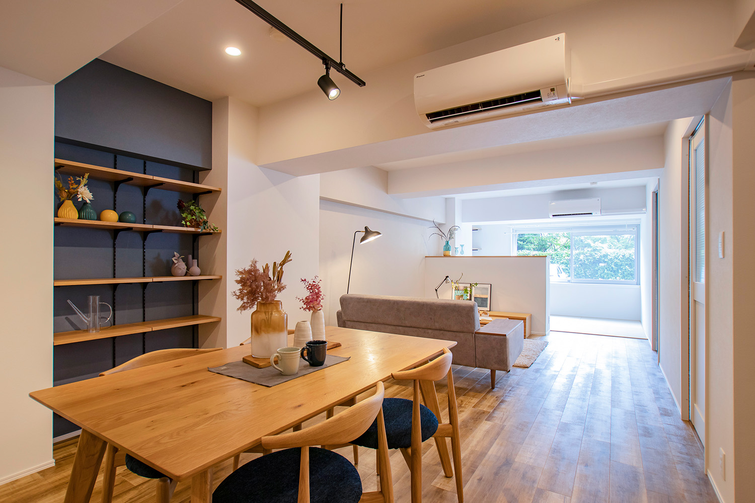 予算的に無理を言ったお願いをあれこれしても、全然大丈夫と言われてびっくり!半信半疑でしたが、見積もりを見たらほんとにだいじょうぶでした。笑 大好きな家具・雑貨・絵画を部屋全体にディスプレイして「好きなもの」に囲まれた理想の暮らしが実現されていました。コンクリート打ちっぱなしの天井は無機質な印象を演出し、シンプルだけどかっこいい内装にしてもらえて本当にありがたいです。