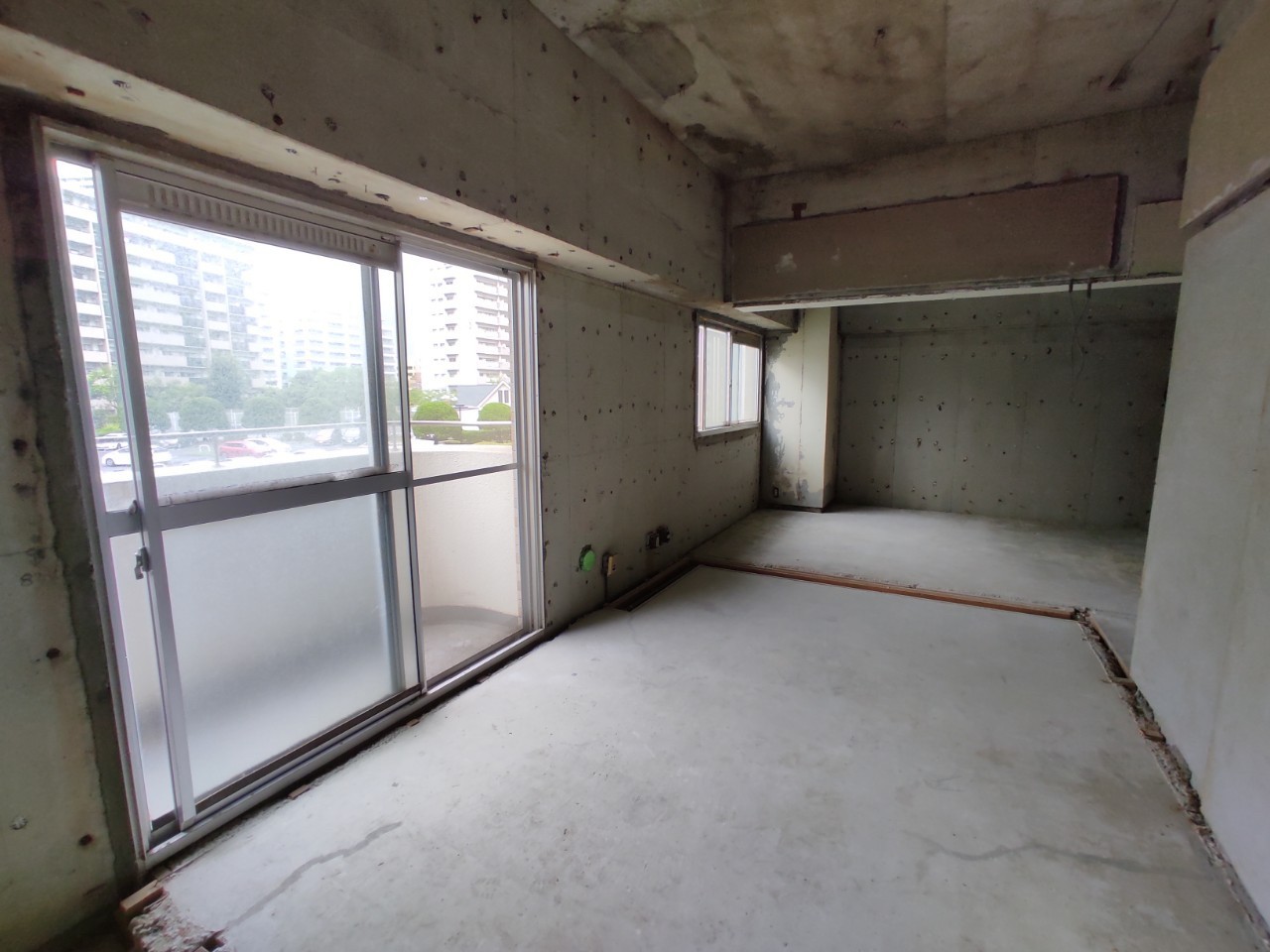 間仕切り壁はすべて解体済みで、躯体と言われるお部屋の外枠のみの状態です。