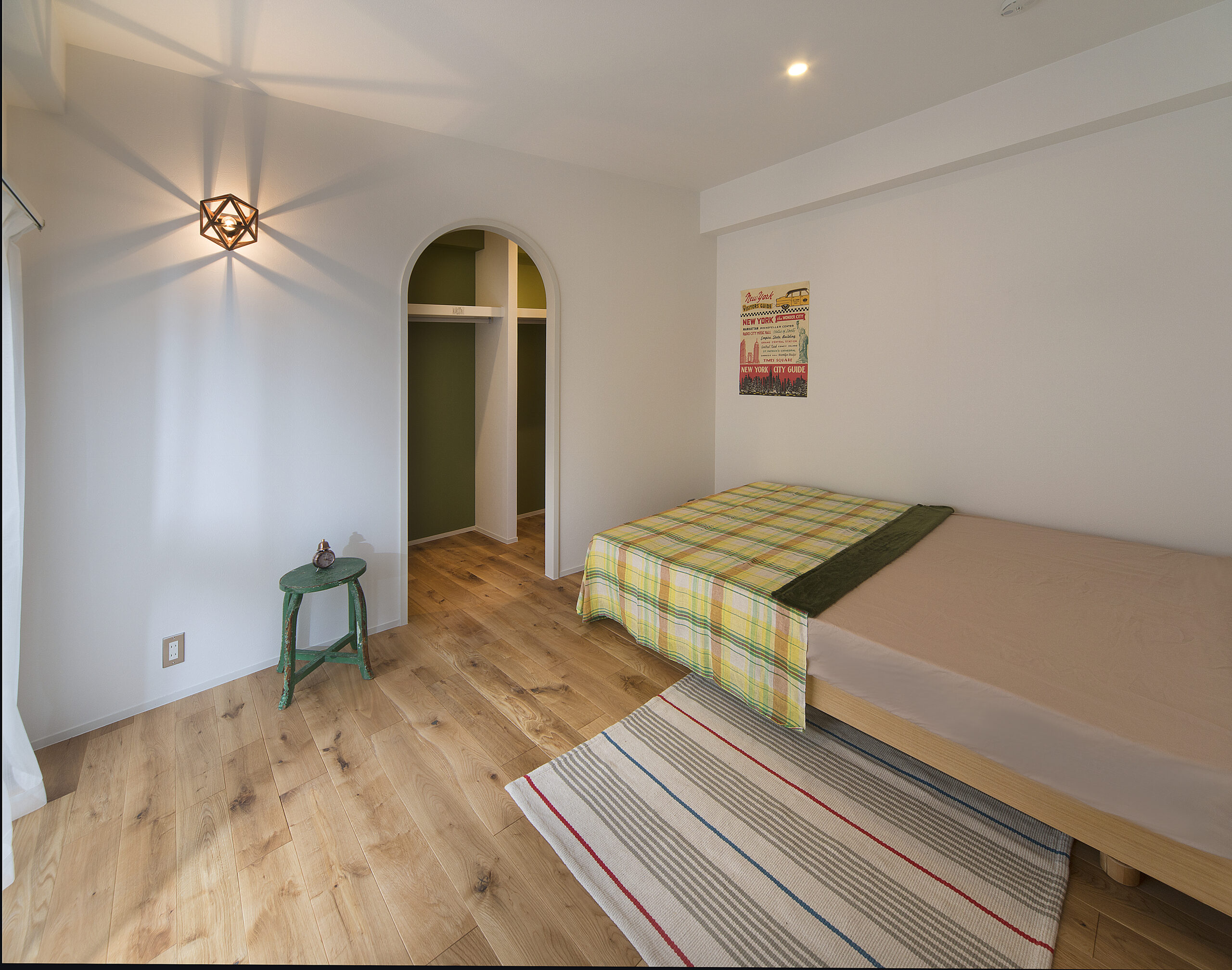 アーチ型にした入口からのぞくグリーンの壁がアクセントとなり、お部屋の雰囲気を和らげます。