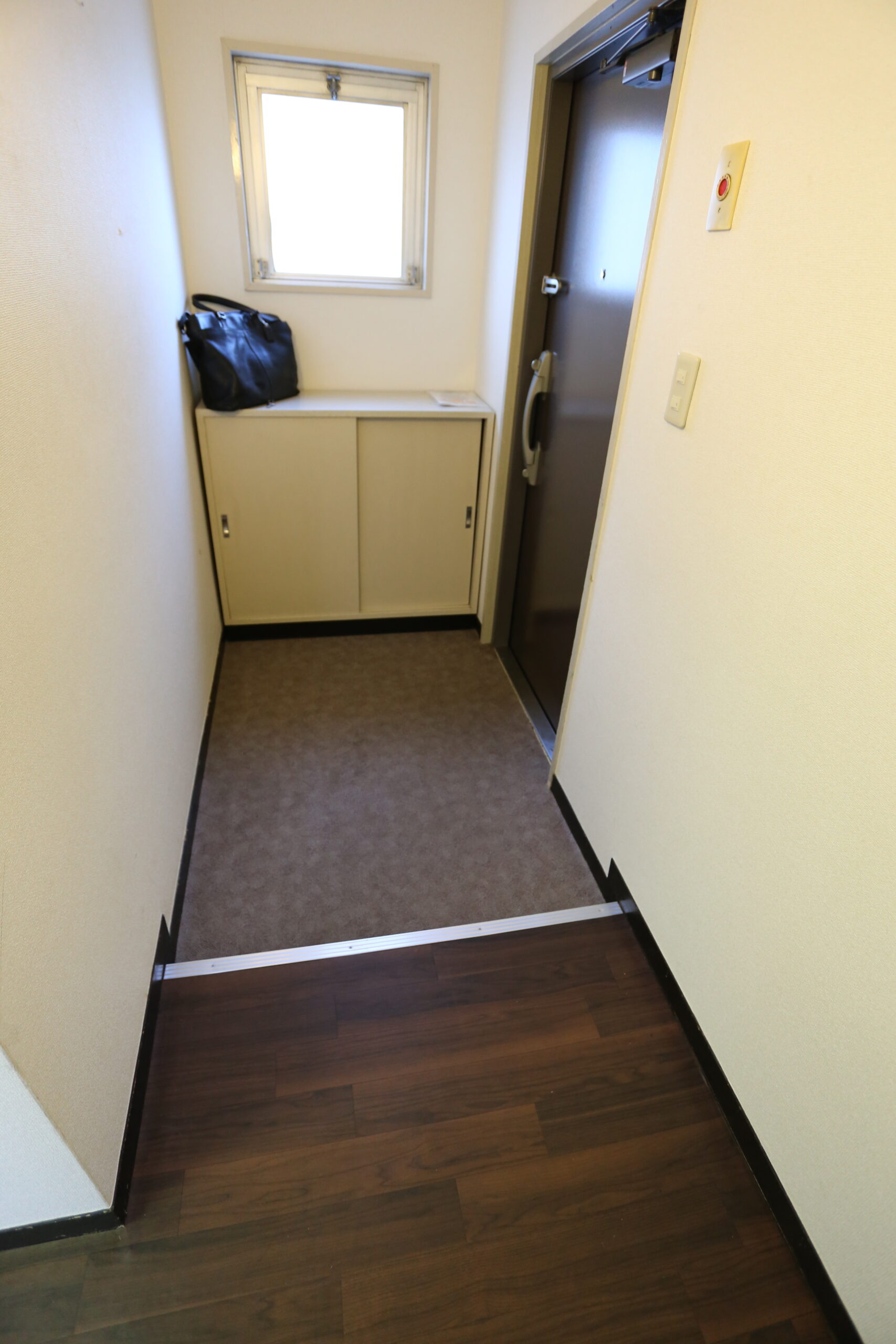 左側のドアは、加工されたガラスを用いており、うっすらと光が入り込むように工夫し、